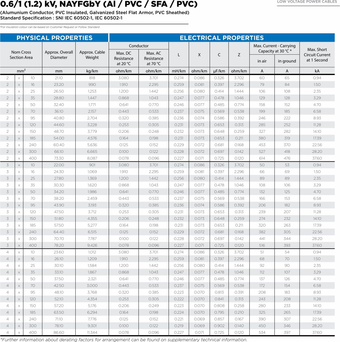 - 10 – 400 sqmm supplied in wooden