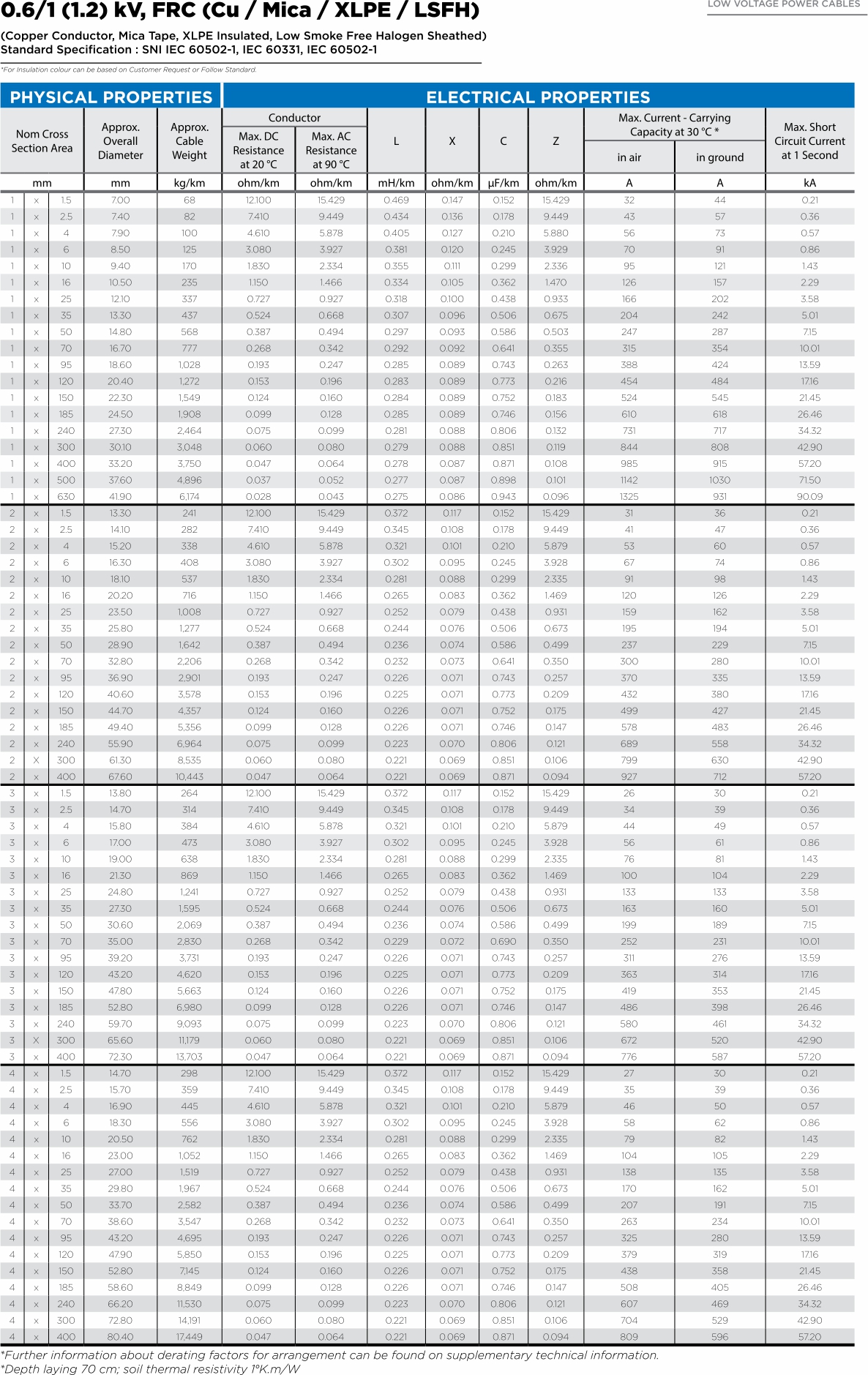 Standard Specification : SNI IEC 60502-1, IEC 60331, IEC 60502-1