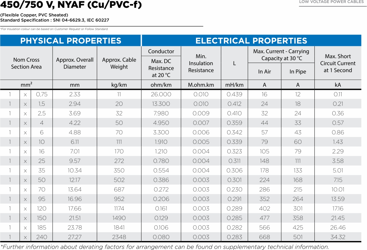 Standard Specification : SNI 04-6629.3, IEC 60227