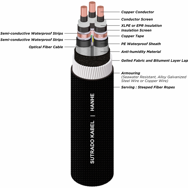 HEAY41-F : EPR-insulated compound waterproof layer alloy-galvanized steel wire amoured fiber-jacketed optical-fiber comprehensive submarine power cable.